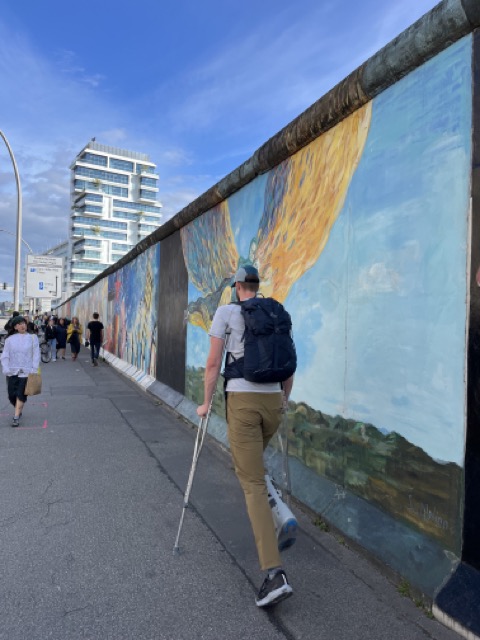 I biked to Alexanderplatz, checkpoint charlie and checked out a bridge. Then met up with Domi for dumplings in the afternoon. He got new crutches which makes walking a bit easier. We tried a bike and it worked! After dumplings we biked to the Jewish Museum. Had supper at the Burgermeister under the S banh bridge. It was pretty cool. Im happy we found a way now to get around Berlin.